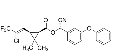 別名 三氟氯氰菊酯;2,2-二甲基-3-(2-氯-3,3,3-三氟-1-丙烯基)環丙烷羧酸-α-氰基-3-苯氧基芐酯;Cyano-3-phenoxybenzyl (1S+1R)-cis-3-(z-2-chloro-3,3,3-trifluoroprop-1-enyl)-2,2-dimethyl cyclopropanecarboxylate;Lambda cyhalothrin;