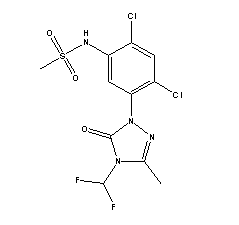 產品編號:Y1950 英文名稱:Sulfentrazone CAS號: 122836-35-5 分析標準品 分子式 C11H10Cl2F2N4O3S 分子量387.19 基本信息: